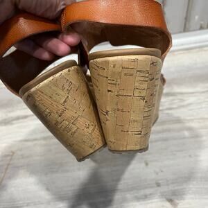 Skechers Brit Go Getter Brown Cork Wedge Platform Sandals Womens Size 8