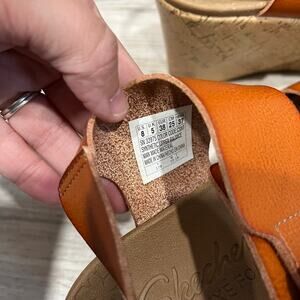 Skechers Brit Go Getter Brown Cork Wedge Platform Sandals Womens Size 8