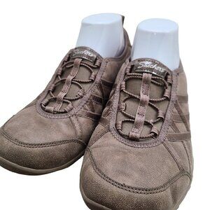 Skechers Brown Breathe Easy Remember Me Vegan Leather Bungee Slip On Sneaker