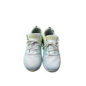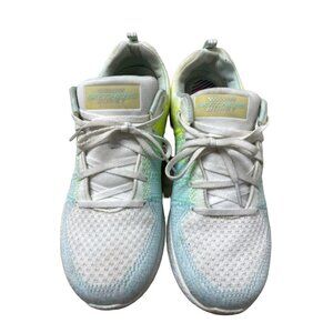 Skechers Burst Women's White/Yellow/Blue Lace-Up Athletic Shoes Size 10