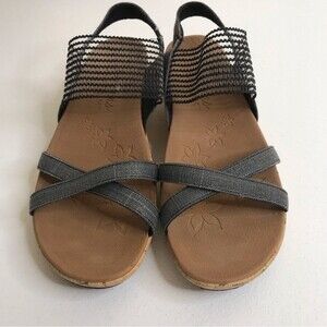 Skechers Cali Beverlee High Tea Wedge Heel Slingback Slide Black Women's Size 9