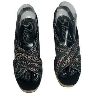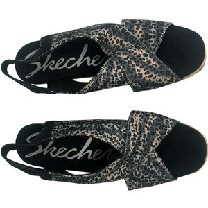 Skechers Cali Club X Ray Tan Black Wedge Sandal Leopard Metallic Shoes 7.5 Comfy