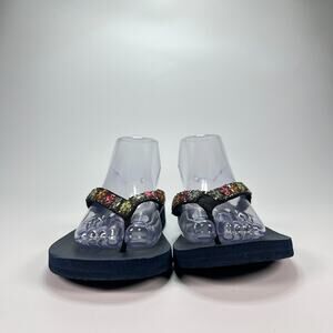 * Other Features: Yoga foam cushioned footbed, lightweight flexible outsole, slip-on flip flop design, embroidered daisy strap detail