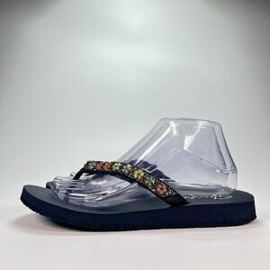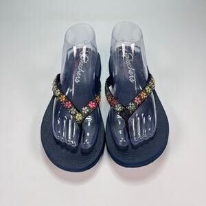 Skechers Cali Meditation Daisy Black Flip Flop Sandals Comfort Women’s Size 9