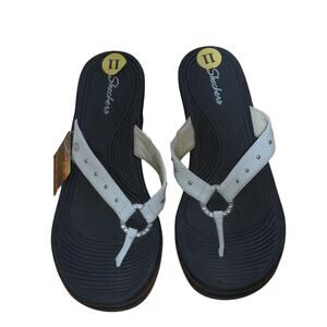 Skechers Cali Patent Leather Flip Flop Wedge Heel White Silver Rhinestone 11 New with Tags (NWT)