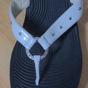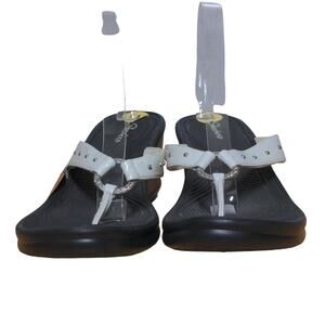 Skechers Cali Patent Leather Flip Flop Wedge Heel White Silver Rhinestone 11 New
