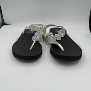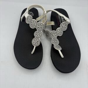 Skechers‎ Cali Sandals Womens Size 11 Meditation Sparkly Fleur White Thong Flip