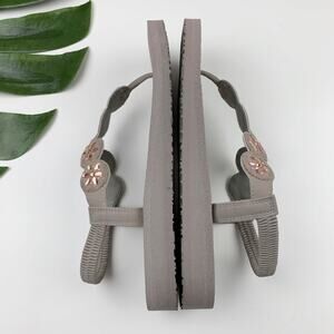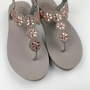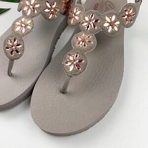 Skechers Cali Sparkly Fleur Thong Sandals Yoga Foam Taupe Jewels Women's 9