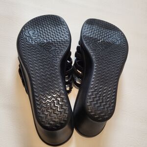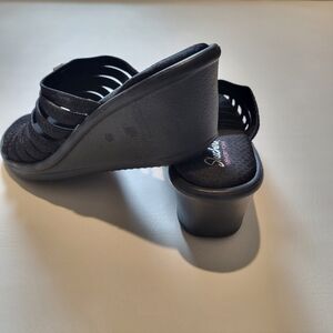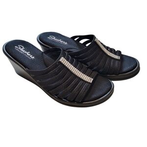 Skechers womens sandal in black with clear rhinestone detail. Size 10. New without box / tags.