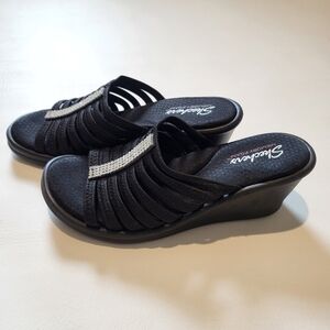 Skechers Cali Womens Rumblers Hot Shot Wedge Sandal black bejeweled size 10 NWOB