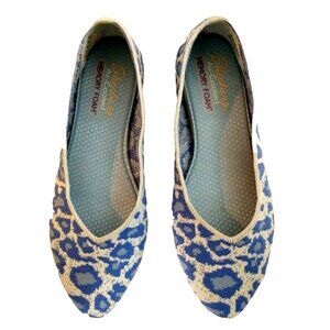 Skechers Cleo Claw Some Blue Leopard Print Stretch Ballet Flats - Size 9