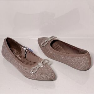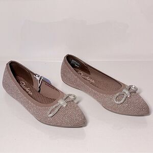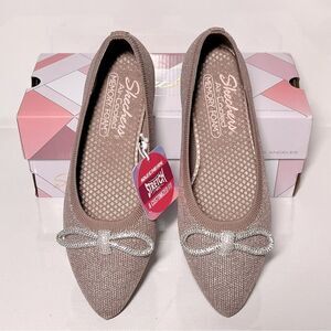 Skechers Cleo Point Glitzy Haze Recycled Vegan Sparkle Knit Bow Flats
