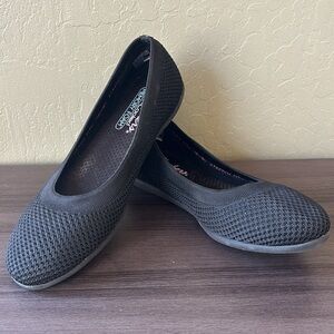 Skechers Cleo Sport On the Move Black Flat Slip On Size 9.5. Excellent condition. Memory foam. Stretch knit, comfort insole. Rubber traction outsole.