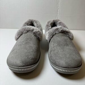 Your toes will be warm and cozy in Skechers Cali® Cozy Campfire - Team Toasty. This casual comfort slipper features a soft suede-textured microfiber fabric upper with faux fur lining and Memory Foam footbed