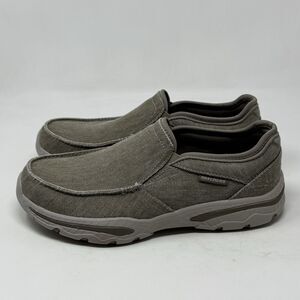 Skechers Creston Moseco Shoes Mens 9 Extra Wide Fit Taupe Brown Canvas Slip On