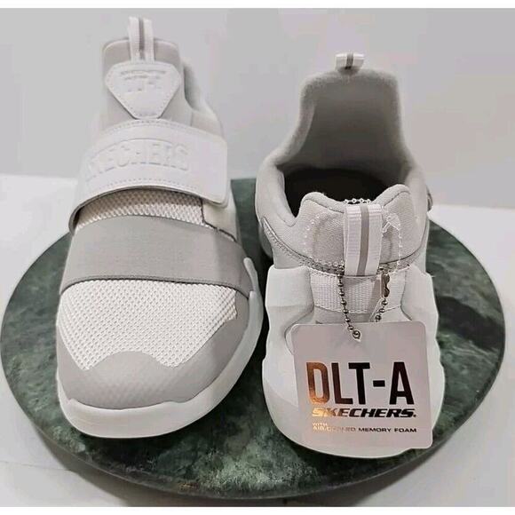 Skechers DLT-A-Static Flare ~Woman Size 8~ White Slip On Sneakers Shoes NWOB.