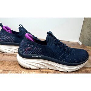 Skechers DLux Walker Slip On Athletic Knit Sneake Navy Blue & Purple Womens 8.5M