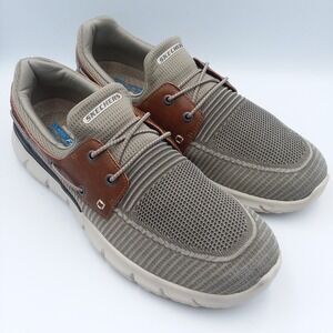 Keywords: Skechers, boat shoes, loafers, slip on shoes, mens shoes, casual shoes, air cooled memory foam, classic fit, size 13, beige shoes, brown shoes, mens footwear, comfortable shoes, walking shoes, deck shoes