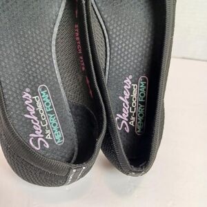 Skechers Flats Women 9.5 Black Stretch Fit Memory Foam Air Cooled Slip On Shoe