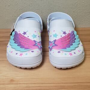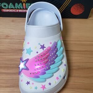 Skechers Foamies Kids Size 6 Light Up Star Clogs Slip On White Girlie Cute NWT