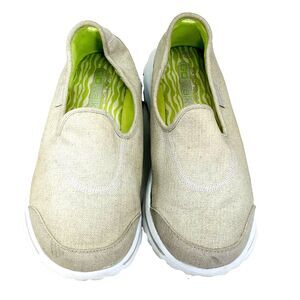 Skechers GO Walk Canvas Sneakers Tan Slip On Shoes 8.5 Women Foam Beach Festival