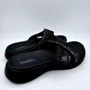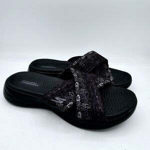 Skechers GOGA Max Go Walk Flex Sandal-Impressed Slide Black & Gray