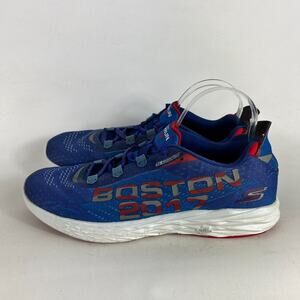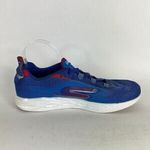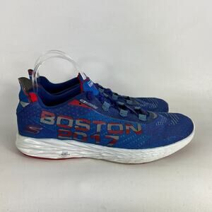 preowned. Elevate your activewear game with these Skechers Go Run 5 Boston sneakers. Designed for men with an US shoe size of 11.5 and a UK shoe size of 10.5, these athletic shoes feature a solid blue color and a low-top shoe shaft style. The synthetic upper material and foam insole material provide comfort and easy care, while the rubber outsole material and cleat type ensure durability and traction. These sneakers are perfect for walking, cycling, and running & jogging, making them a versatile choice for any season - winter, summer, fall, and spring. The lace-up closure and quick-fit design make them easy to put on and take off, and the Skechers GOrun product line guarantees their quality. Get ready to step up your sports game with these stylish and comfortable sneakers.