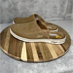 Skechers Go Walk Arch Fit Lounge Men Sz 8 Wheat Indoor Outdoor Athletic Slippers