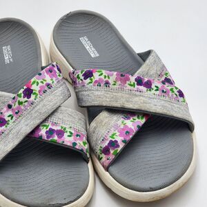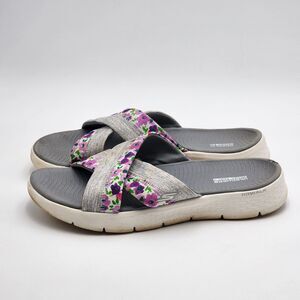 Skechers Go Walk Flex Gray Multi Blossom Slide Sandals Size 10