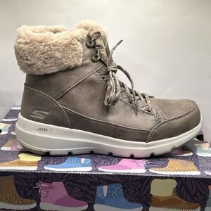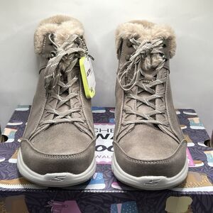 Skechers Go Walk Glacial Waterproof Winter Boots Womens 6 Dark Taupe NIB