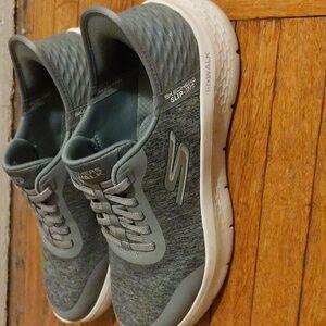 Grey patterned upper, padded white rubber bottoms. EUC--worn only 3 times.