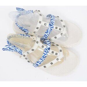 Skechers Goga Mat Leather White Blue Studded Strappy Sandals Beachy Women's 8