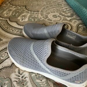 Stylish gray slip-on shoes with breathable mesh. Ideal for everyday comfort.