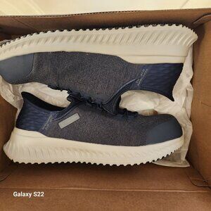 Skechers Hands Free Slip-ins molder heel work shoes. Men's. Size 10. Brand new in box/original box/packaging. No rips/stains/scuffs/tears/peeling or wear. Navy blue. Smoke free home. No odors. All offers are welcome. Thank you!