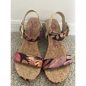 Skechers Hawaiian Floral Aloha Cork Wedge Sandals Heels Women 9 Buckle