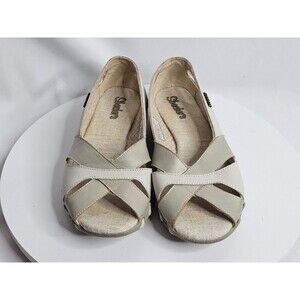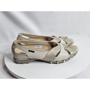 Skechers Cream Leather Flat Slip On Open Toe Comfort Shoe Womens Sz 6.5 EU 36.5