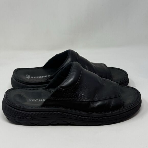 Skechers Jammers Slide Sandals Mens 11 Black Leather Chunky Sole Vintage Y2K