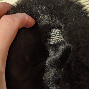 Genuine suede with faux fur lining and adjustable buckle accent.