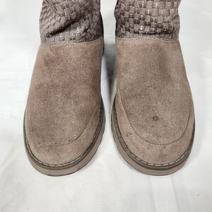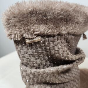 Chic Skechers ankle booties. Soft fur trim. Woven texture with bead accents. Ideal for chilly days