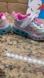 Colorful sneakers with a rainbow pattern. Pink accents and heart details. Perfect for fun outings. Pink, green, blue, yellow, sparkly, light-up hearts. These are in good used condition with lots of wear remaining.