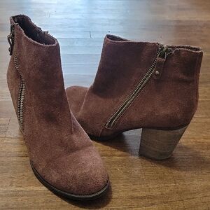 Stylish chestnut booties with side zipper on each side, one for decor. Perfect for casual wear. gently worn, no stains, smoke free home