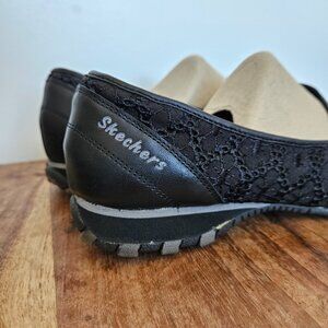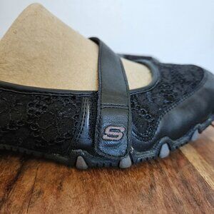 Skechers Leather Mary Jane Shoe Women Size 7.5 Floral Lace Black Ballet FlatsY2K