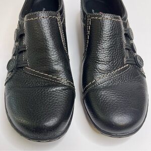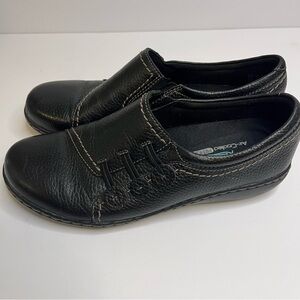 Black leather slip on shoes with rubber soles size 7.5