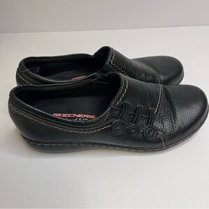 Skechers Leather Relaxed Fit Air-Cooled Memory Foam Black Slip-On Loafers 7.5