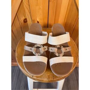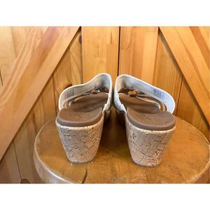 Skechers Luxe Foam Sandals Women's 10 Tan Beige Comfort Platform Wedge Slip On 2.75” heel