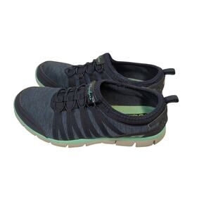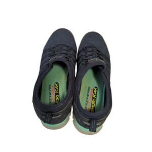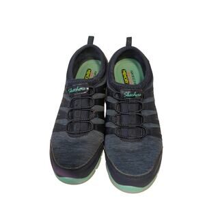 Skechers slip-on size 7.5 women's sneakers. Navy blue gorgeous turquoise accents. In excellent condition. Show very little sign of wear