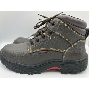 Skechers Men's 77143MC Brown Leather Steel Toe Safety Boots Lace Up Size US 13