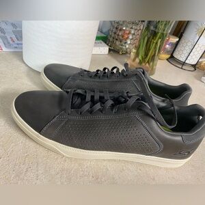 Sleek black design with perforated detail. Comfortable and stylish for daily wear.