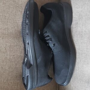 Experience comfort with Skechers black mesh shoes with air cooled memory foam. Lightweight and stylish design. Ideal for everyday wear. Lightly worn.
