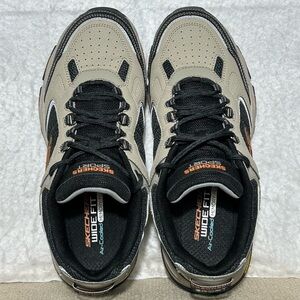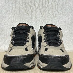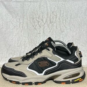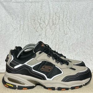 Skechers Mens Vigor 3.0 Leather/Synthetic Upper w/Air-Cooled Memory Foam Insoles Casual Shoes. Color: Black/Taupe Pre-owned Condition - refer to pictures for description of shoes. No Rips or Tears. Smoke-Free.